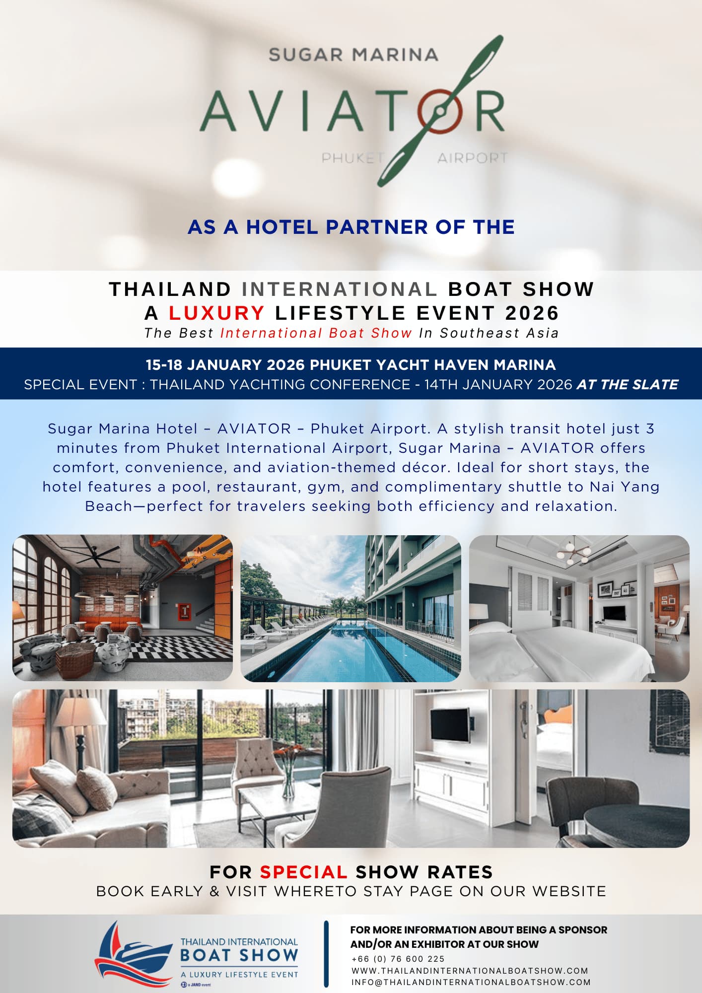 JAND Group Co., Ltd. MMB Building, 9/17 Moo 6, Thepkasattri Road, Ratsada, Phuket Thailand For information about being an exhibitor and / or Sponsor, please contact +𝟲𝟲 (𝟬) 𝟳𝟲 𝟲𝟬𝟬 𝟮𝟮𝟱 info@thailandinternationalboatshow.com...