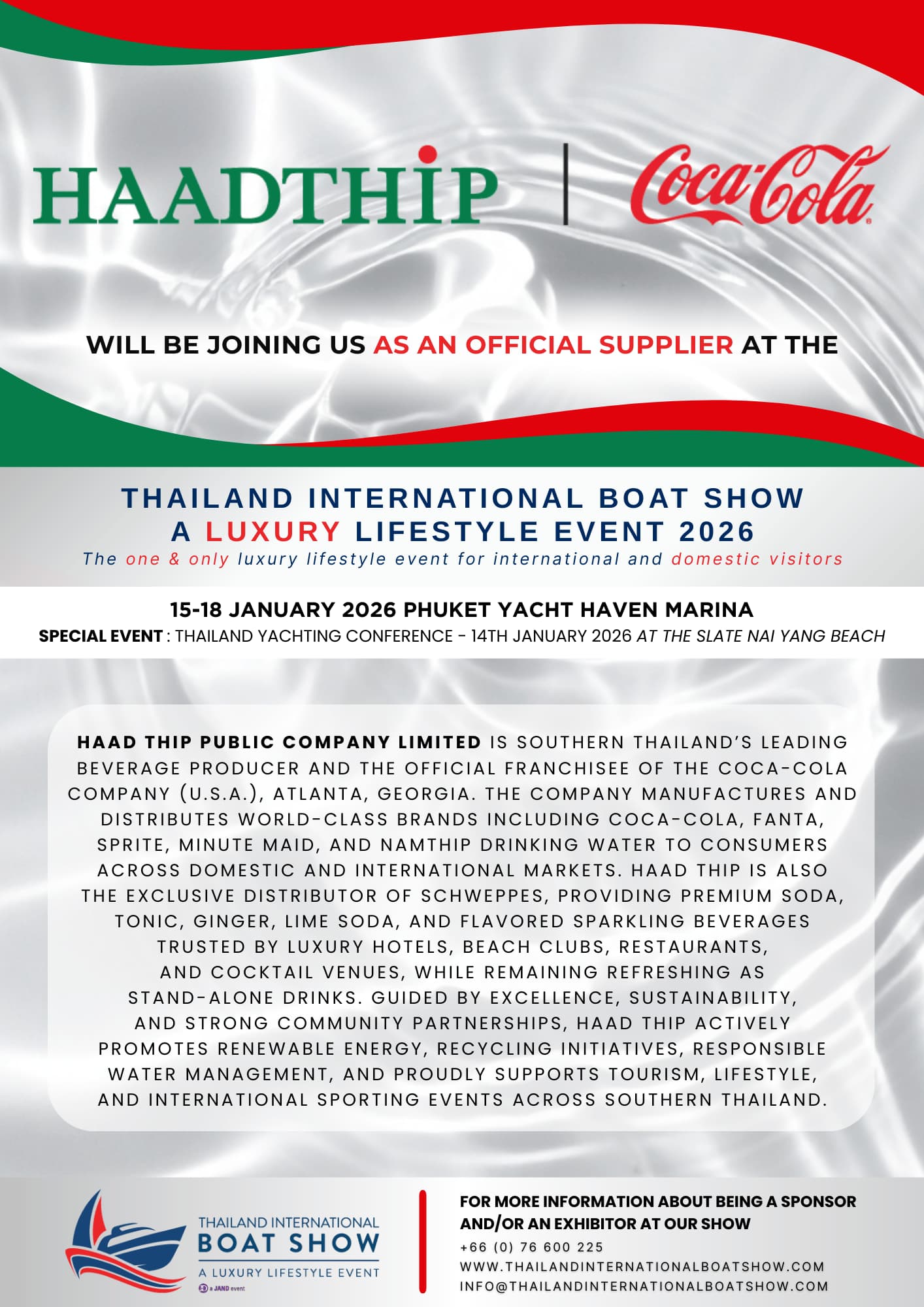 Haadthip Coca Cola Will Be Joining Us as an Official Supplier at the Thailand International Boat Show A Luxury Lifestyle Event | 15–18 January 2026.