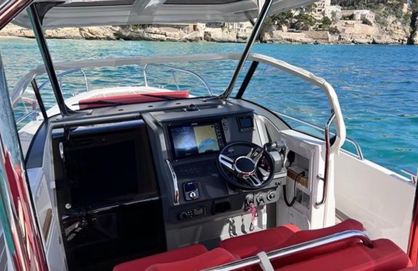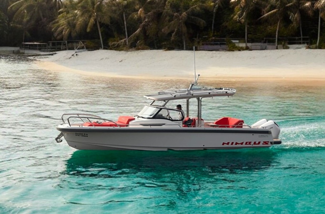 Meet the Nimbus T9, a true marvel on the water. Powered by 2 X MERCURY FOURSTROKE V6-225HP XL engines, it effortlessly cruises at up to 35 knots, ensuring a thrilling ride. But the T9 isn't just about speed; it's designed for versatility. Featuring a roof rack and fishing rod holders, you're all set for angling adventures. The Roof rack on the T top adds an extra dimension to your storage needs. In striking red, the T9 stands out with its vibrant color cushions, adding a touch of style to your outings. And for your entertainment, it boasts a high-end stereo package complete with an 4 speakers, Amplifier and subwoofer, ensuring you have the best soundtrack to accompany your adventures on the water. The Nimbus T9 - where power, style, and practicality unite to create unforgettable boating experiences. Thai registration, VAT paid. Viewings by appointment.