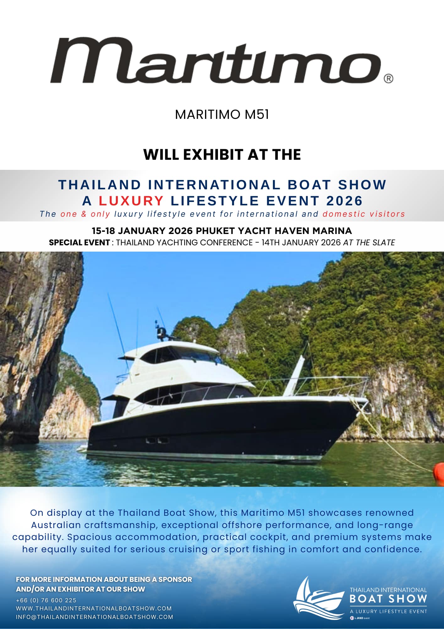 Maritimo M51 Will Exhibit at the Thailand International Boat Show A Luxury Lifestyle Event | 15–18 January 2026.