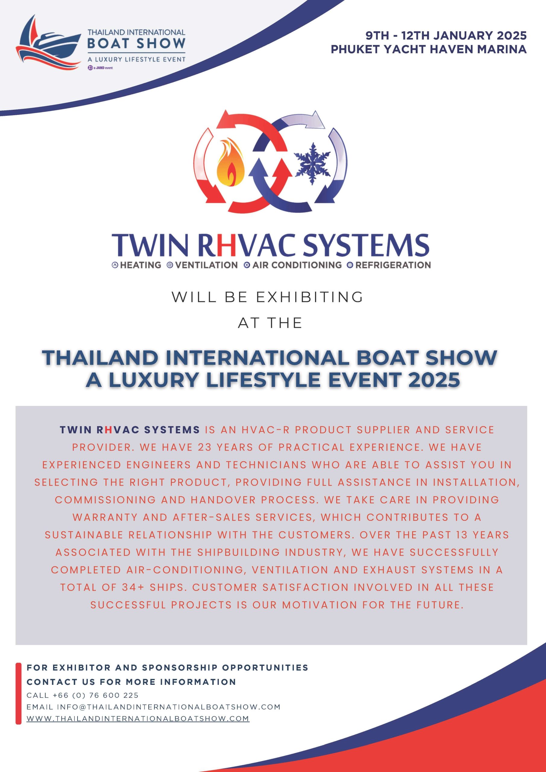 TWIN RHVAC SYSTEMS will be exhibiting at the Thailand International Boat Show A Luxury Lifestyle Event 2025